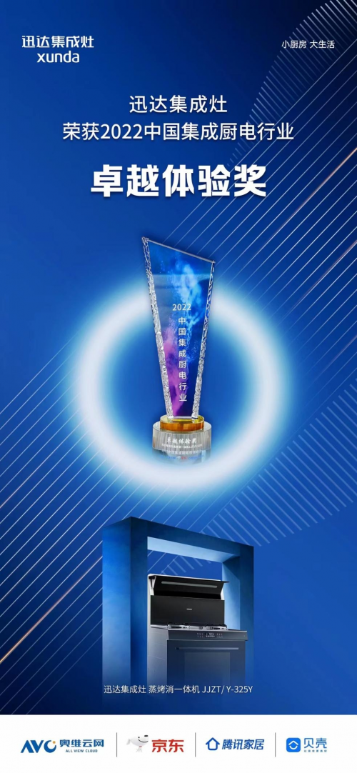 在品牌林立的集成灶行业,迅达厨电始终专注于集成灶的研发与生产,在本次颁奖盛典上,迅达厨电荣获“2022中国集成厨电行业十大品牌”与“2022中国集成厨电行业卓越体验奖”双项大奖。获此殊荣,是业界同行与市场消费者对迅达的肯定与认可,更是对迅达集成灶高端品质与匠心服务的嘉誉!