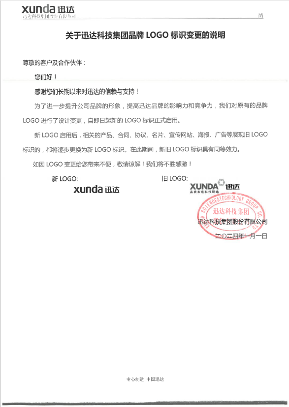 为了进一步提升公司品牌的形象,提高迅达品牌的影响力和竞争力,我们对原有的品牌LOGO 进行了设计变更,自即日起新的LOGO标识正式启用。
