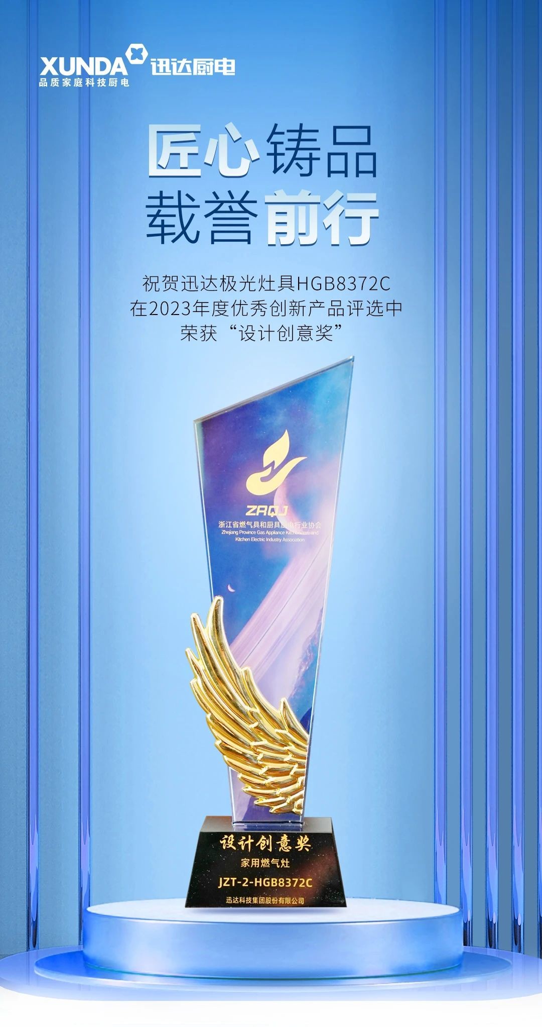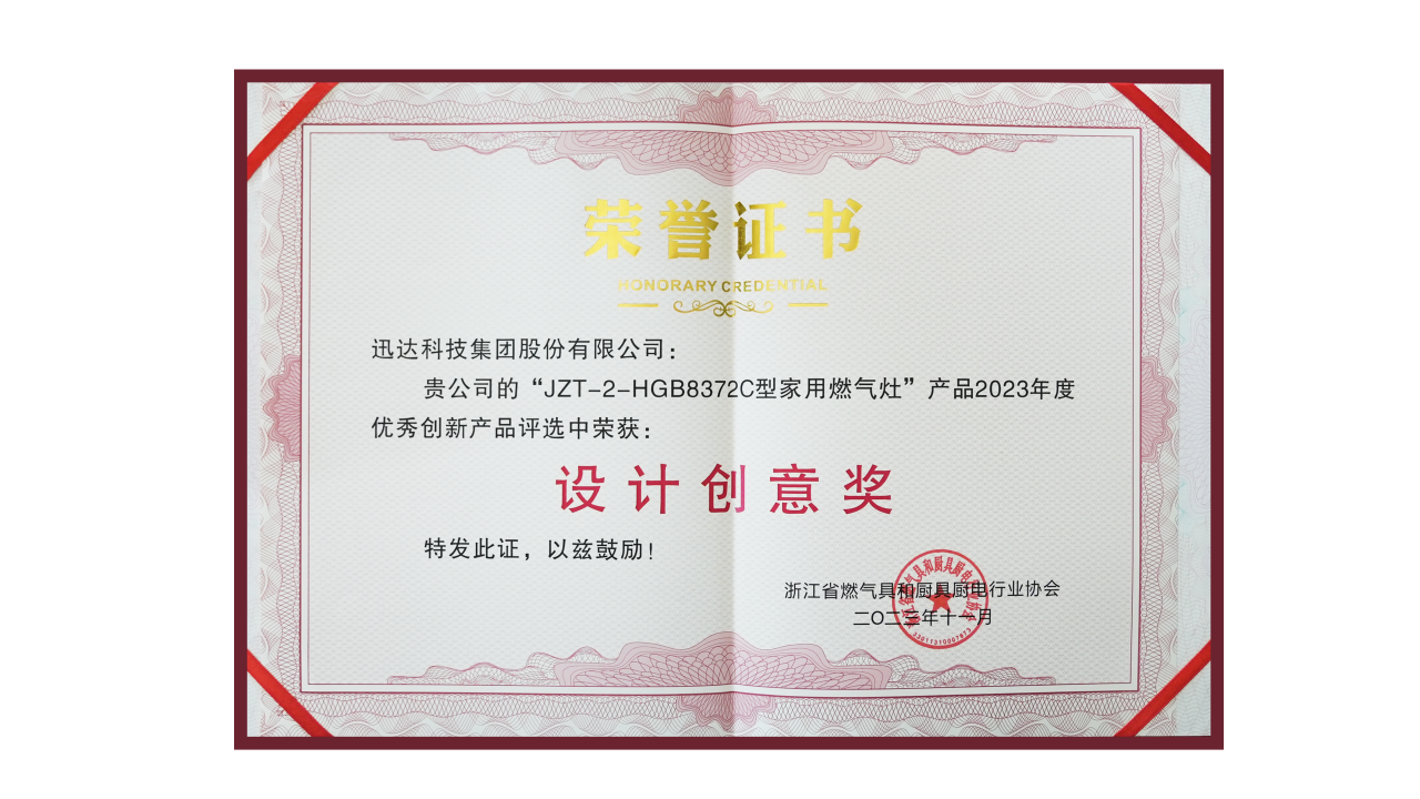 正因如此,面对行业技术专家的层层考核与同类产品的实力比拼,迅达极光套系灶具JZT-2-HGB8372C一路过关斩将,凭借独树一帜的工艺设计、高效节能的技术内核斩获2023年度优秀创新产品评选“设计创意奖”。
