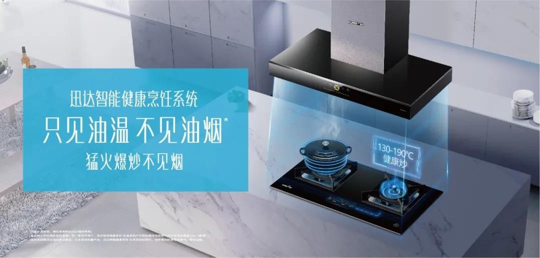 迅达厨电拥有众多享誉业界的创新技术,以此为纽带,提升用户的产品使用体验。最新发布的智能健康烹饪系统,更是引领业界、具有前瞻性的智能烹饪技术,集AI灶具系统、AI烟机系统、XUNUI控制系统于一体,糅合“智能”、“健康”、“美味”,解决众多中国家庭一直以来存在的“美食与健康不可兼得”、“美味与营养不可共存”、“爆炒与浓烟不可绝缘”的历史性难题,为用户提供一整套智能化健康烹饪解决方案。